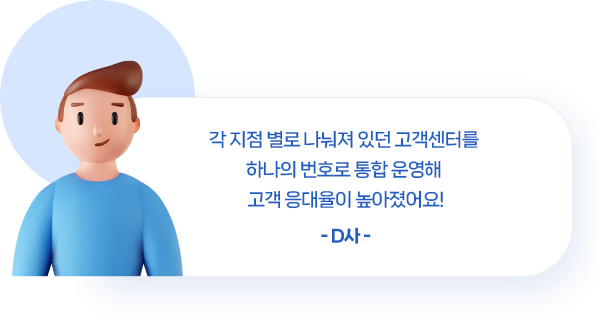 유통/제조 분야 고객사의 경우 하나의 대표번호로 각 지점별 응대가 가능해 고객 상담만족도와 응대율이 상승했습니다.